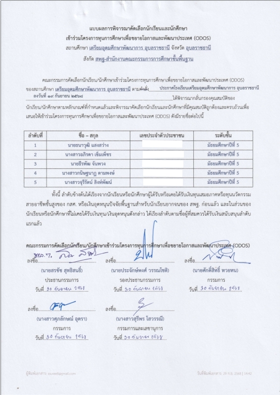 ผลการพิจารณาคัดเลือกนักเรียนและนักศึกษา เข้าร่วมโครงการทุนการศึกษาเพื่อขยายโอกาสและพัฒนาประเทศ (ODOS)